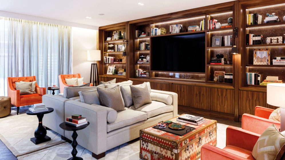 In one of London’s most distinctive new neighbourhoods, the Residents’ Lounge at Battersea Power Station becomes a destination within a home. Designed to offer residents a stylish escape, it features a state-of-the-art screening room, media-wall lounge spaces with bookshelves, comfortable seating for meetings or catching up and a bar serving coffee, cocktails and drinks.