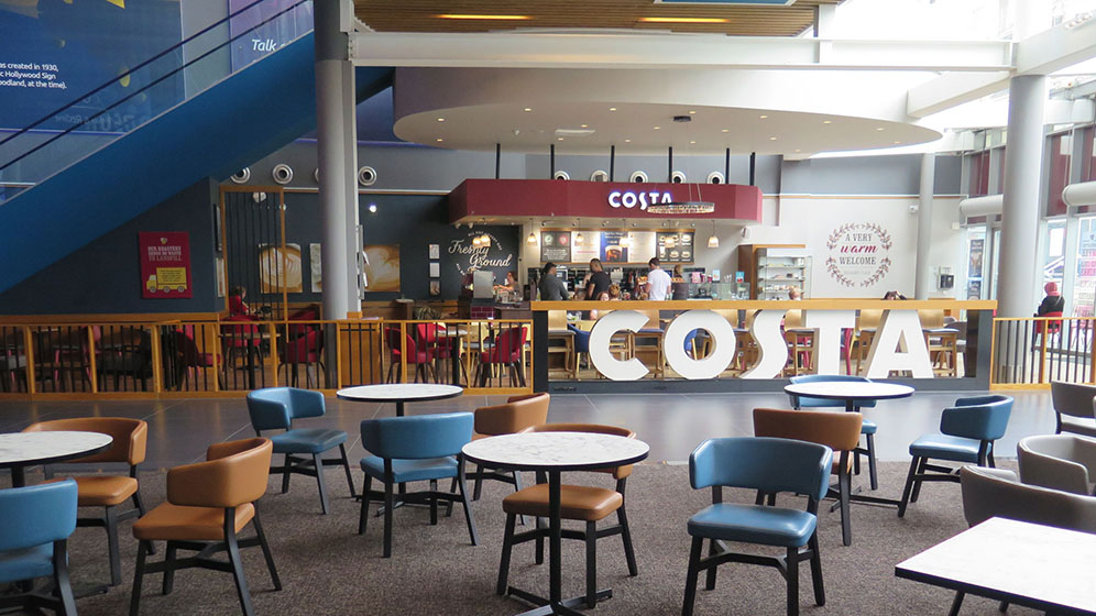Since Costa Coffee’s origins in London in 1971, the brand has grown into the country’s largest coffee chain. Martek has played a key role in installing Costa outlets across a wide range of environments, including hospitals, universities and cinemas. Working with multiple Costa-approved interior designers, we ensure each site reflects the brand’s identity while meeting the functional requirements of busy service environments.