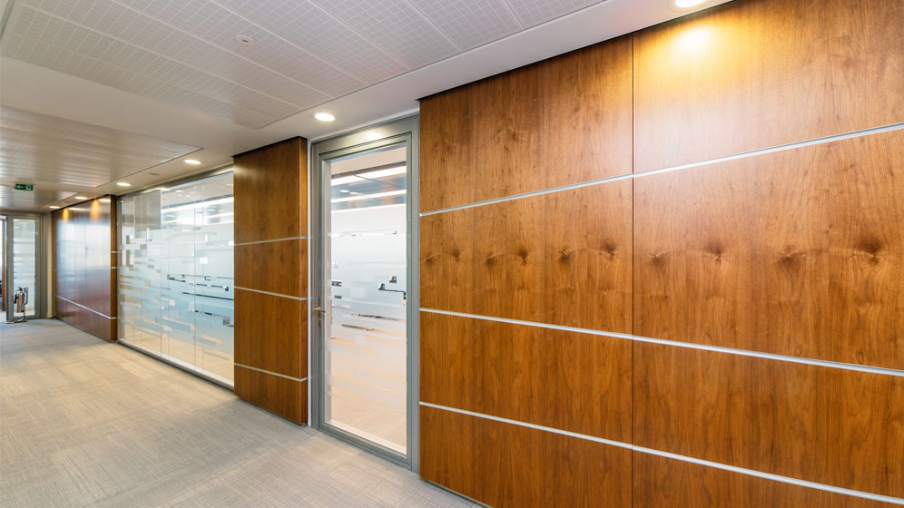 Particular care was taken in the boardrooms, where high-polished finished doors and bespoke joinery were meticulously matched to the boardroom tables. This very high-gloss finish was a deliberate luxury feature, requiring precision craftsmanship to ensure consistency, depth of finish and a seamless visual relationship between furniture and architectural elements.