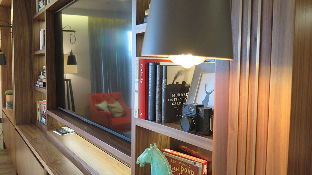 Design, manufacture and installation of fully bespoke media wall systems, including integrated storage, fireplace housings, feature lighting, display shelving, concealed cupboards and custom-built frameworks to support AV technology.