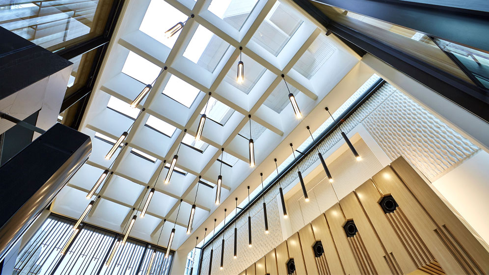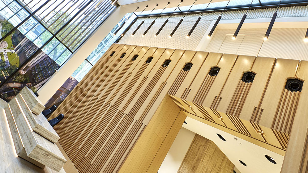 Bespoke joinery installation throughout the building, with a full refurbishment of the reception area to enhance arrival, usability and finish quality.